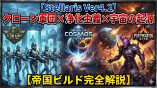 Stellaris(ステラリス)Ver 4.2環境において、少数の惑星で銀河最強の経済力と技術力を叩き出す「内政特化(Tall)ビルド」の最高峰が、起源「機械惑星」と伝統「仮想化」を組み合わせた帝国です。本記事では、序盤の圧倒的な統合力ラッ...