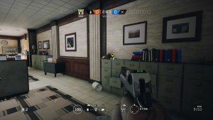 5枚目の落とし戸(トラップドア)から抜かれないように6枚目の柱で射線を遮れます。