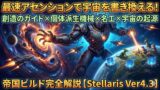 Ver4.3のデフレ環境においても圧倒的な出力を誇り、新国是「ガーディアン・マトリックス」の防衛・内政バフと「建設ロボット」のインフラ構築力をフル活用した非常に完成度の高い内政特化ビルドを詳細に解説します。